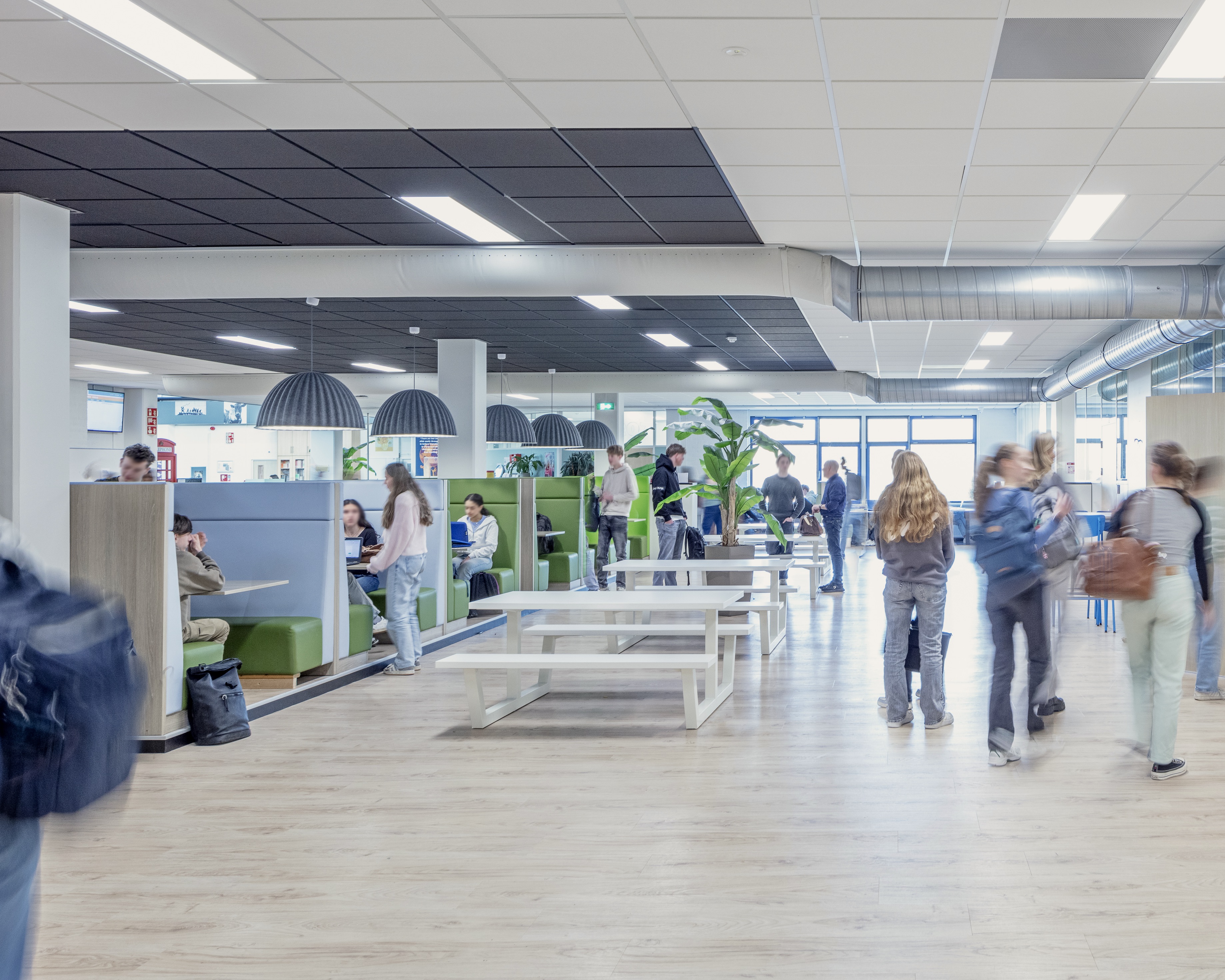Het interieur is zorgvuldig afgestemd op de domeinenstructuur van de school. Dit heeft geresulteerd in een moderne en frisse uitstraling die perfect aansluit bij de onderwijsvisie. Bij de inrichting is bewust gekozen voor een ontwerp dat niet alleen functioneel is, maar ook uitnodigend en inspirerend werkt voor leerlingen en docenten. Om dit te bereiken, zijn er inspiratiesessies georganiseerd met de toekomstige gebruikers van het gebouw: de leerlingen zelf, die actief hebben meegedacht over sfeer en inrichting.